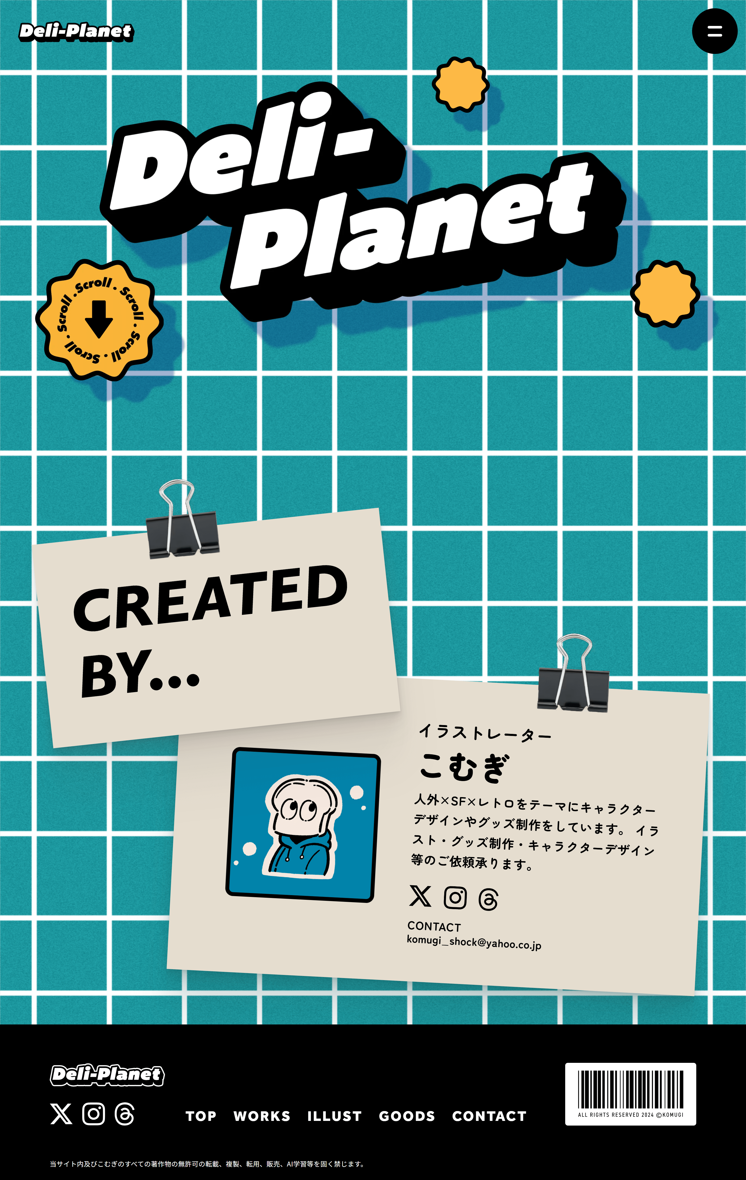 イラストレーターこむぎ様のオフィシャルサイトを作成しました。 グッズ作品が多数あるというクライアントの強みを生かし、まるで本物のグッズショップを訪れているかのような臨場感と期待感のあるサイトを制作しました。