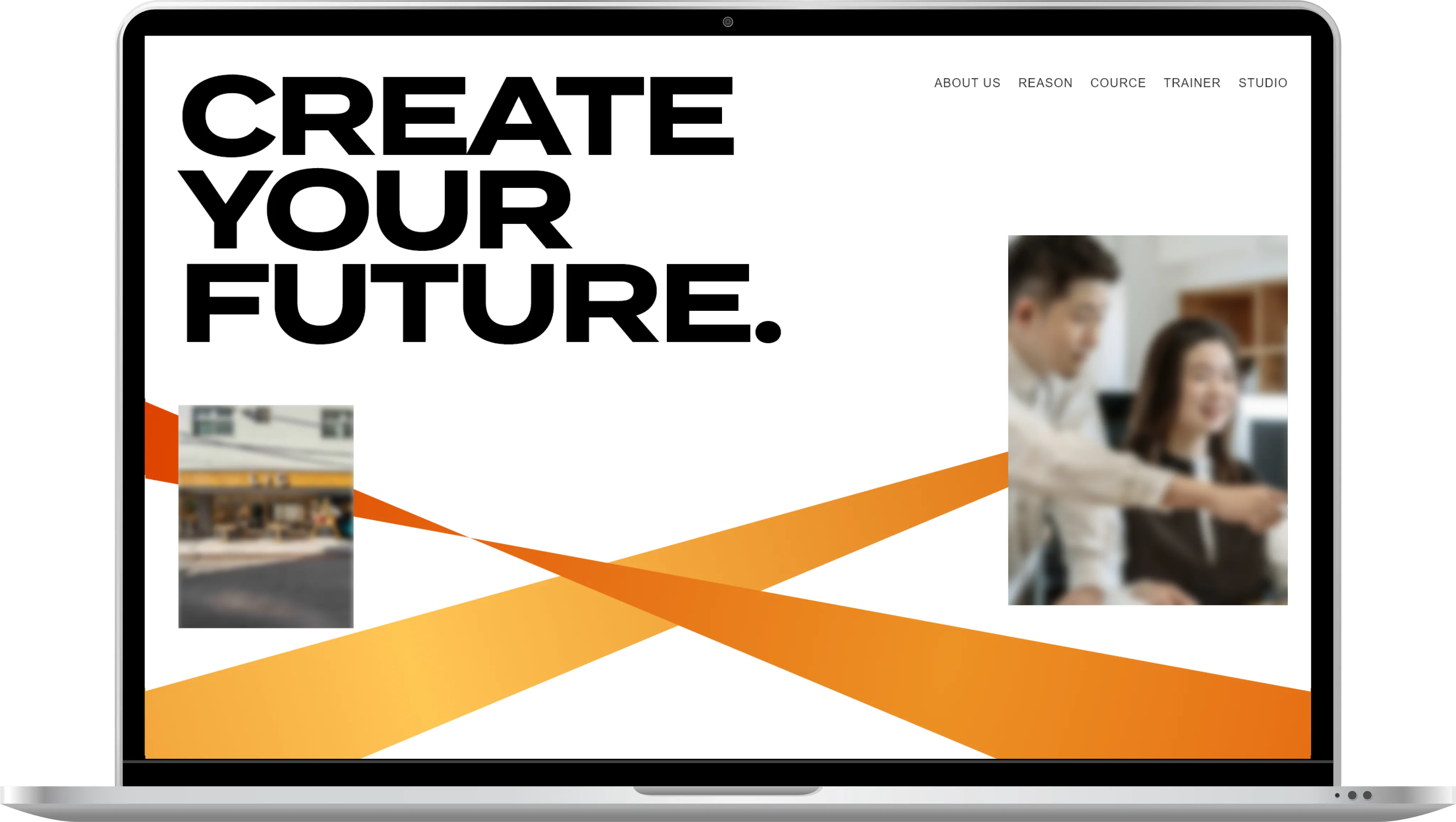 即時的なコンバージョンを目的とするのではなく、 ユーザーの「本気スイッチを押す」ことを重視した構成となっています。 ページ上部では抽象的なビジュアルやコピーで感情に訴え、スクロールするにつれて具体的なカリキュラム内容や卒業生の声、 環境の詳細へと導く流れにしています。ファーストビューには、プロ講師とともに真剣に学ぶ生徒の写真を配置することで、 言葉以上に“この場所なら信じられる”という信頼感とリアリティを届けるよう設計しました。