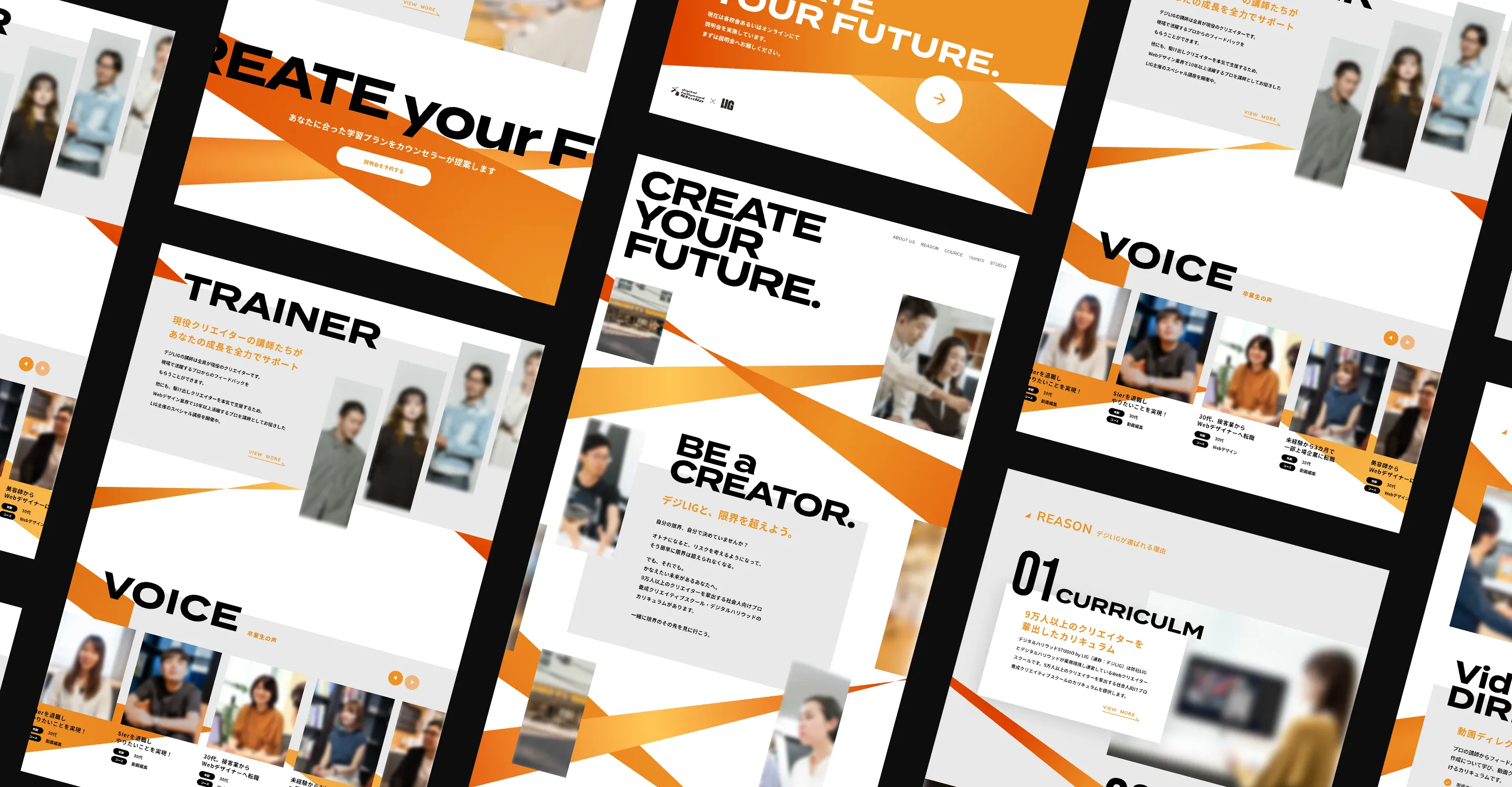 デザイン面では、「デジリグで、限界を超えよう。」というコンセプトのもと、 親しみやすさよりも“本気度”と“プロフェッショナル感”を重視しました。 文字組にはジャンプ率の高いレイアウトを用い、直線的な構成で緊張感のある空気を演出。 フォントにはTerminaを使用することで、LIGらしい無骨さとストイックな印象を両立させています。 配色は黒とオレンジを基調とし、視覚的にも“プロっぽさ”や覚悟を表現。 全体としては「熱いけれど暑苦しくない」「スタイリッシュで芯がある」印象を目指しました。