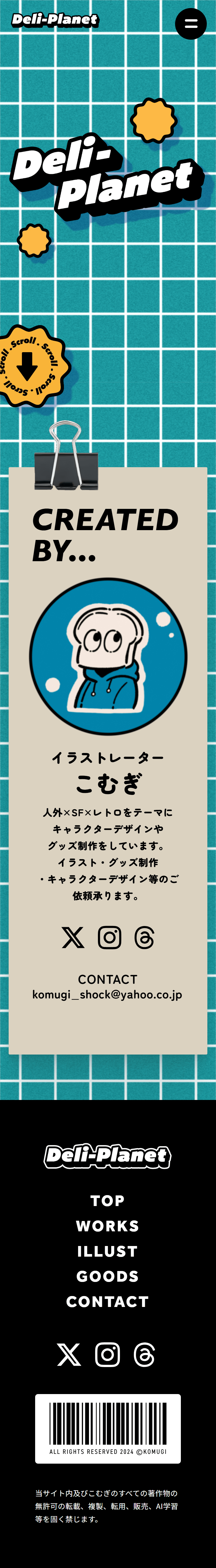 イラストレーターこむぎ様のオフィシャルサイトを作成しました。 グッズ作品が多数あるというクライアントの強みを生かし、まるで本物のグッズショップを訪れているかのような臨場感と期待感のあるサイトを制作しました。