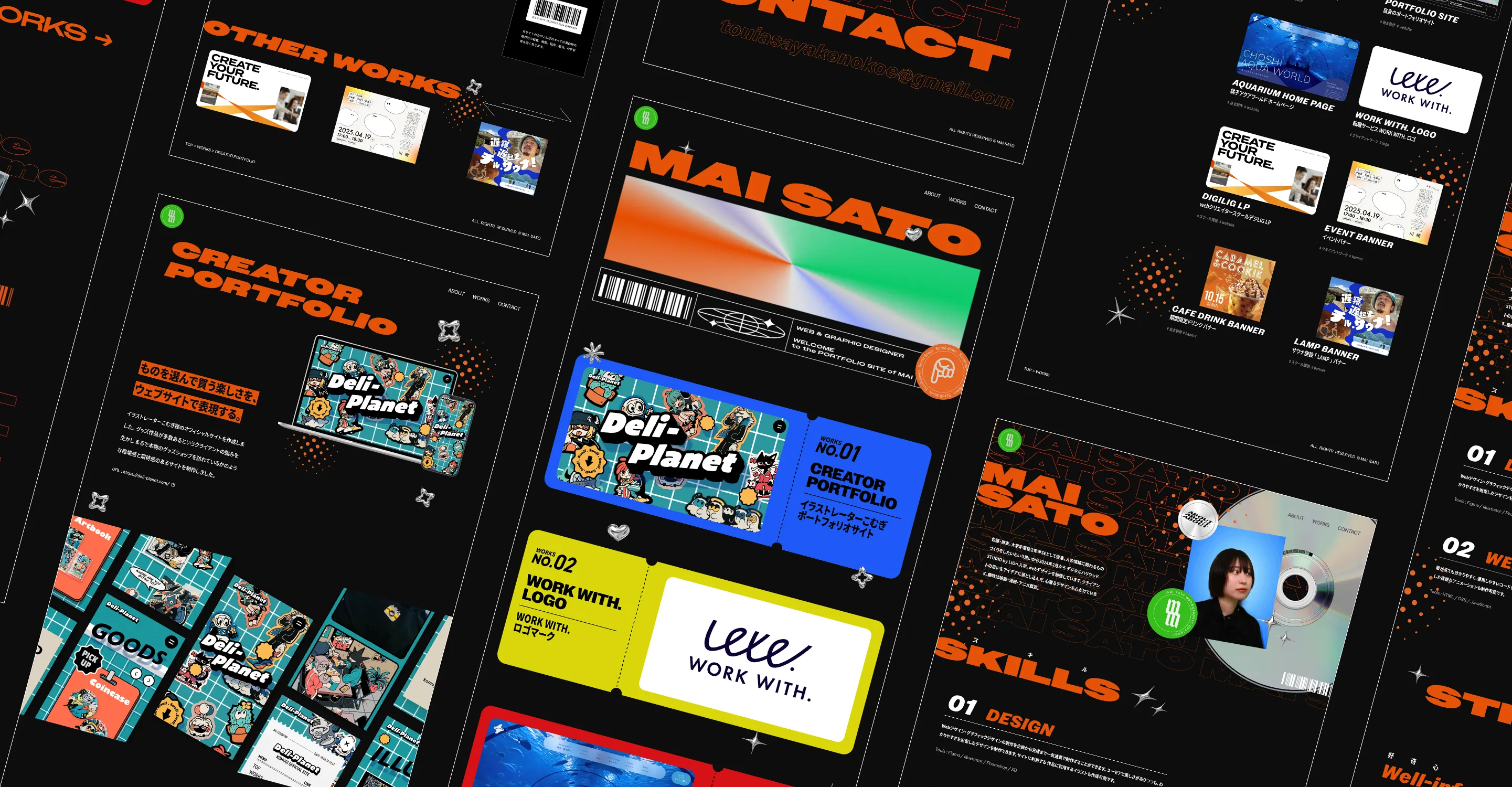 転職活動のため、ポートフォリオサイトを制作しました。デザイン全体で自分自身を表し、 自分の好きや、制作で大切にしていることが見ただけで伝わるような表現を心がけました。